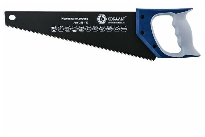 Ножовка кобальт по дереву 400 мм, 7 TPI, тефлоновое покрытие закаленный зуб, 3D-заточка, двухкомпонентная рукоятка 246-142 информация: