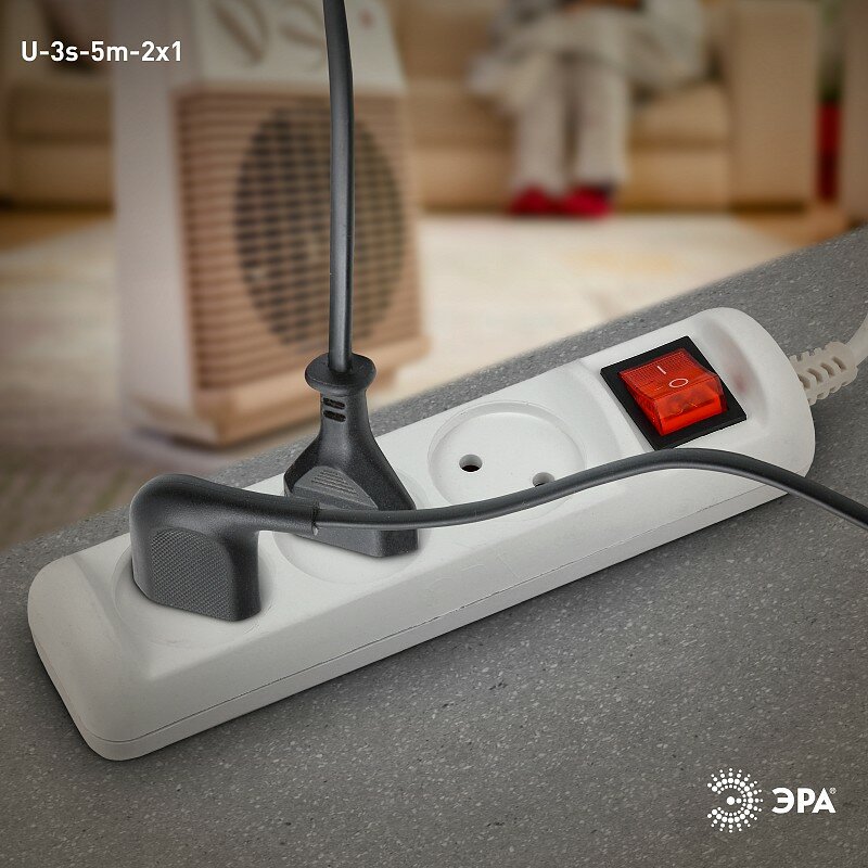 Отзывы на Удлинитель электрический ЭРА U-3s-5m-2x1 без заземления c выключателем 3 розетки 5м ПВС 2x1мм2 10А