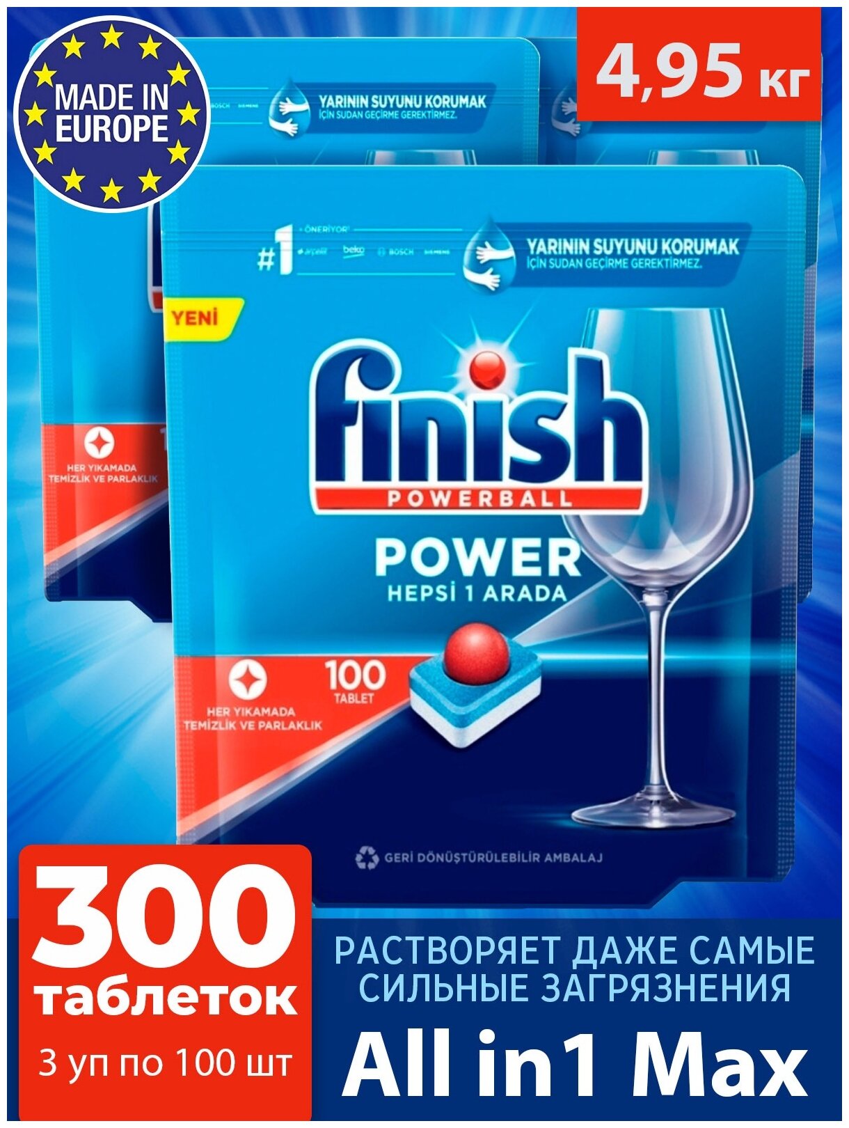 Finish таблетки для мытья посуды в посудомоечных машинах All in1 Max 300 шт (100x3), спайка из 3 упаковок по 100 штук информация: