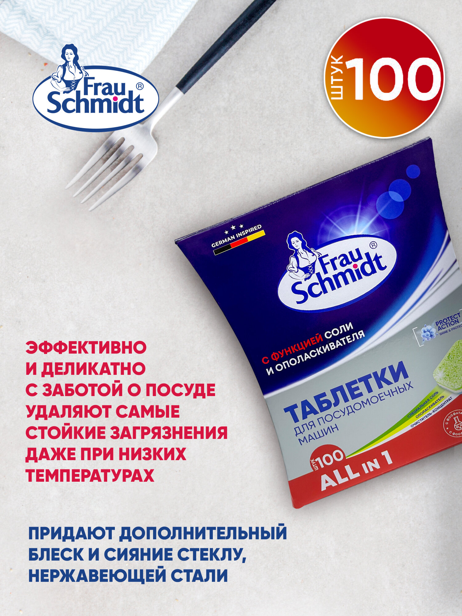 10 цен на Frau Schmidt Таблетки для посудомоечных машин "All in one" - 100 шт. (в коробке)
