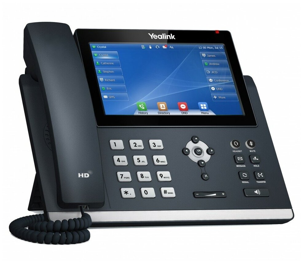 IP-телефон Yealink SIP-T48U, 16 SIP аккаунтов, цветной 7 дюймов touchscreen дисплей 800х480, конференция на 5 абонентов, поддержка EHS.