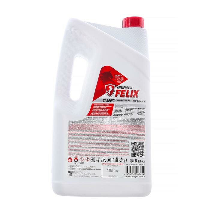 Антифриз FELIX Carbox-40 G12 ТС красный, 5 кг информация: