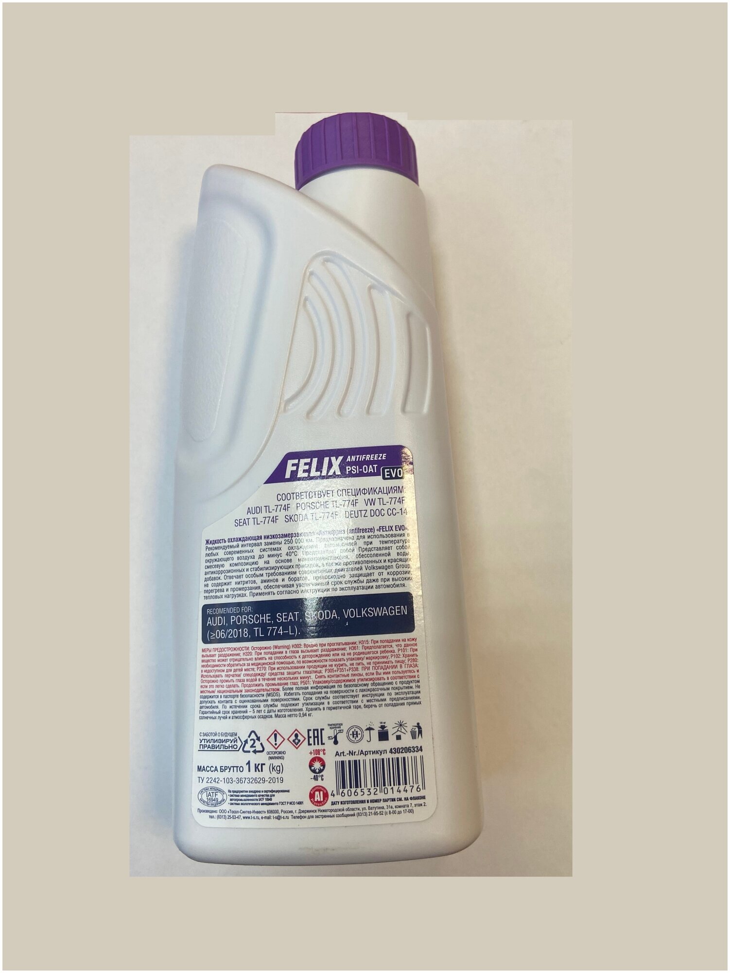 FELIX / 430206334 / (14476) антифриз фиолетовый 1KG (870 мл) (готовый) EVO / до -40°С PSI-OAT ASTM D 3306