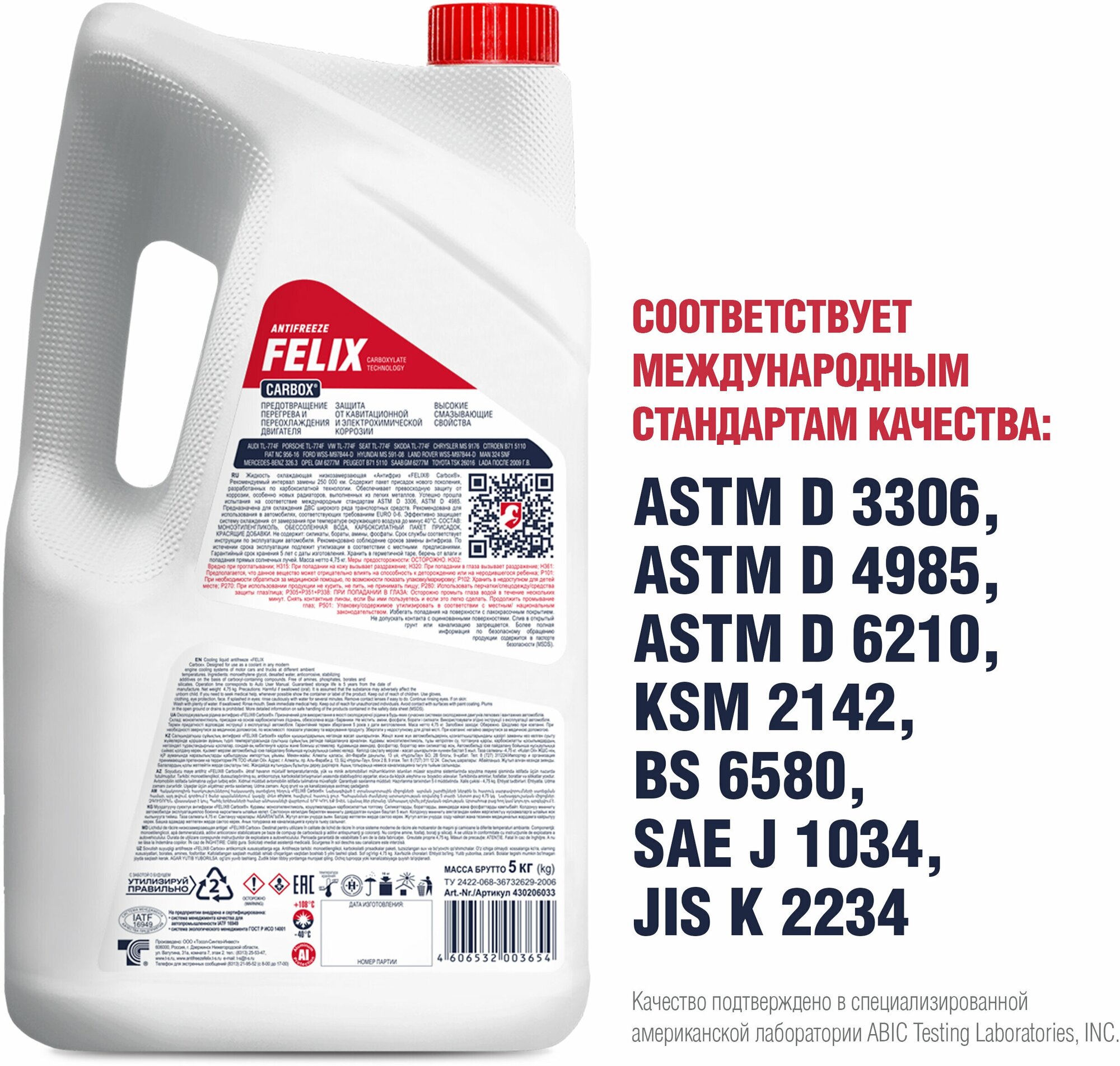Антифриз 5кг - Антифриз Красный G12+. Astm D 3306, Astm D 4985, Astm D 6210, Ksm 2142, Bs 6580, Sae J 1034, Jis K 2234. Felix... 1 040 ₽