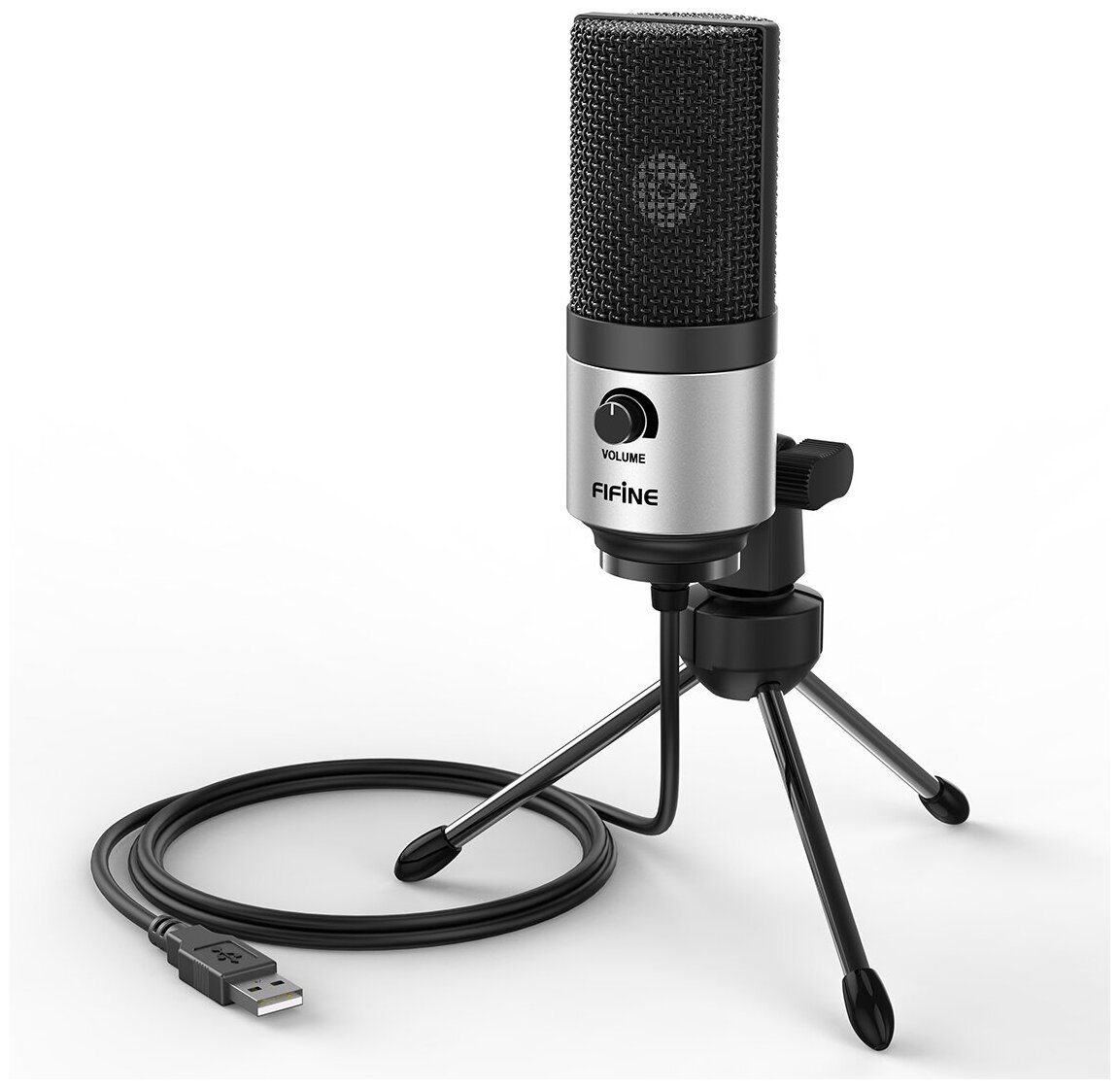 Конденсаторный студийный USB-микрофон Fifine K669 (компьютерный, игровой, для стримов, для конференций, Silver)