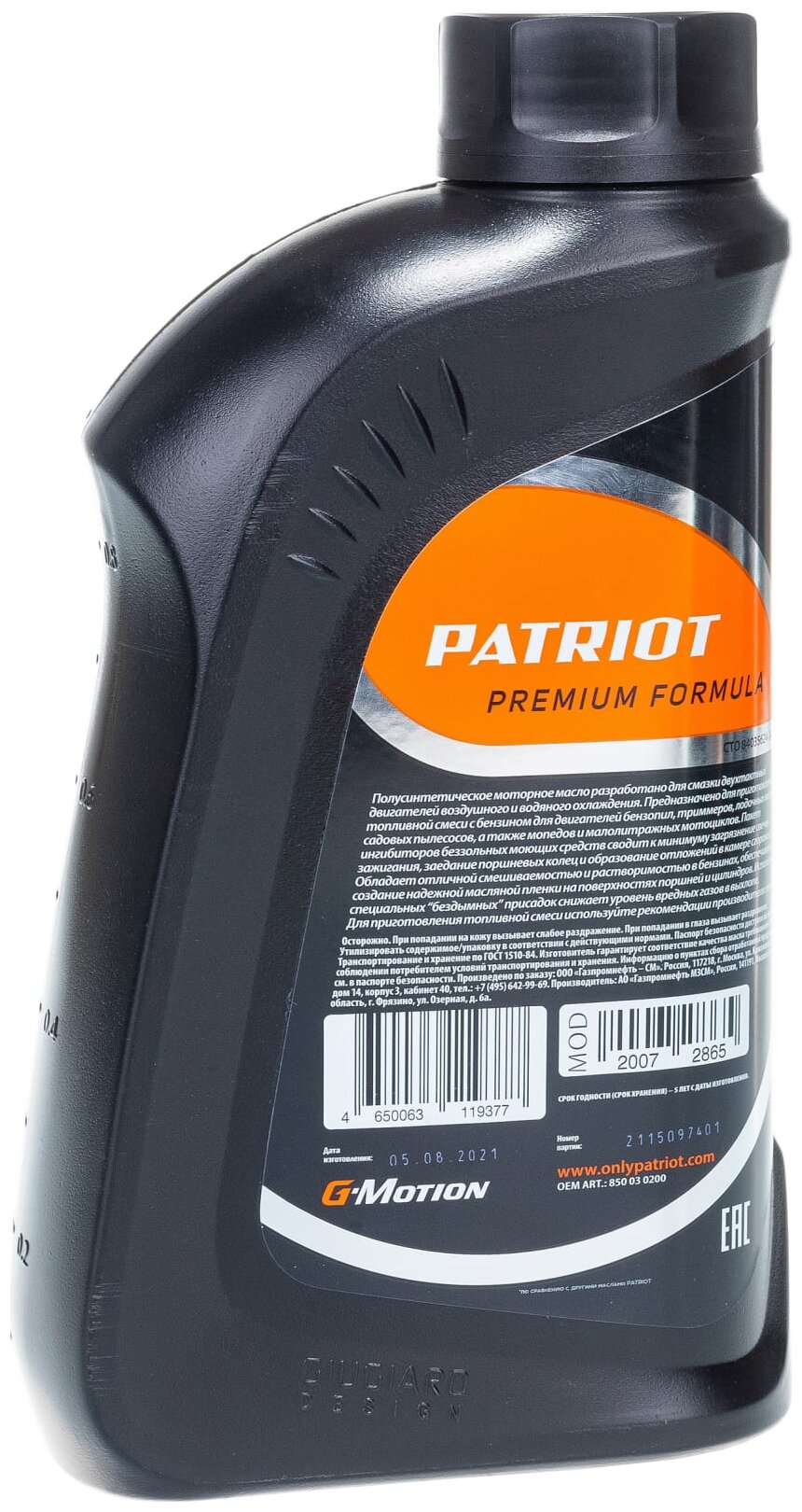 Присадка PATRIOT G-Motion 2Т EURO 1л п/синтетика информация: