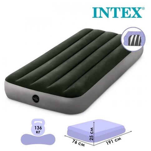 Матрас надувной Intex, 191х76х25 см, 64106, флокированный, 136 кг
