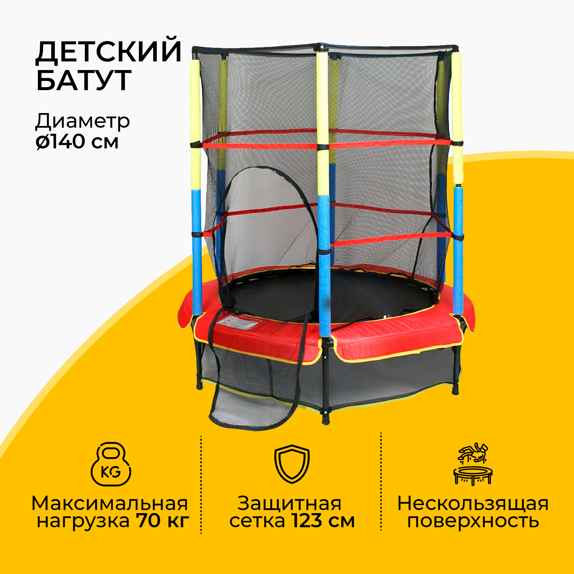 Батут детский, с защитной сеткой, красный, диаметр 140 см информация: