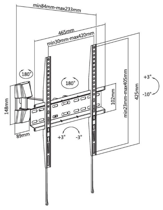 Ultramounts Кронштейн Ultramounts UM878, для ТВ, наклонно-поворотный, 32-55", 84-233 мм от стены, черный 2 885 ₽