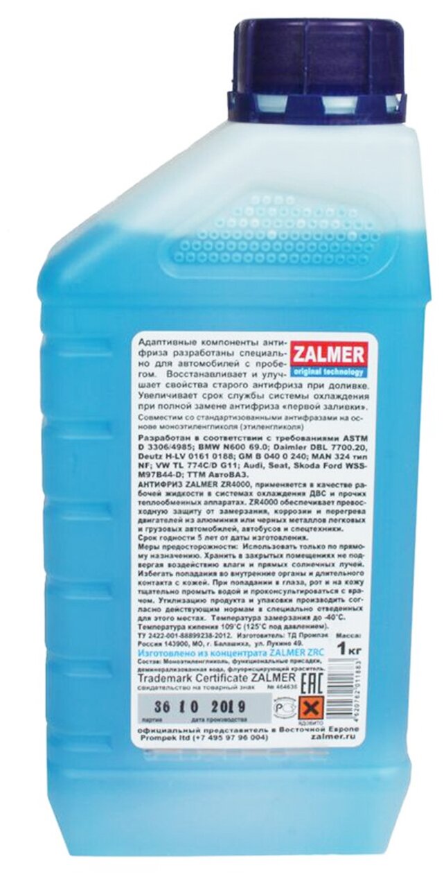 Антифриз Zalmer LLC ZR 4000 G11 (синий) 1 кг информация: