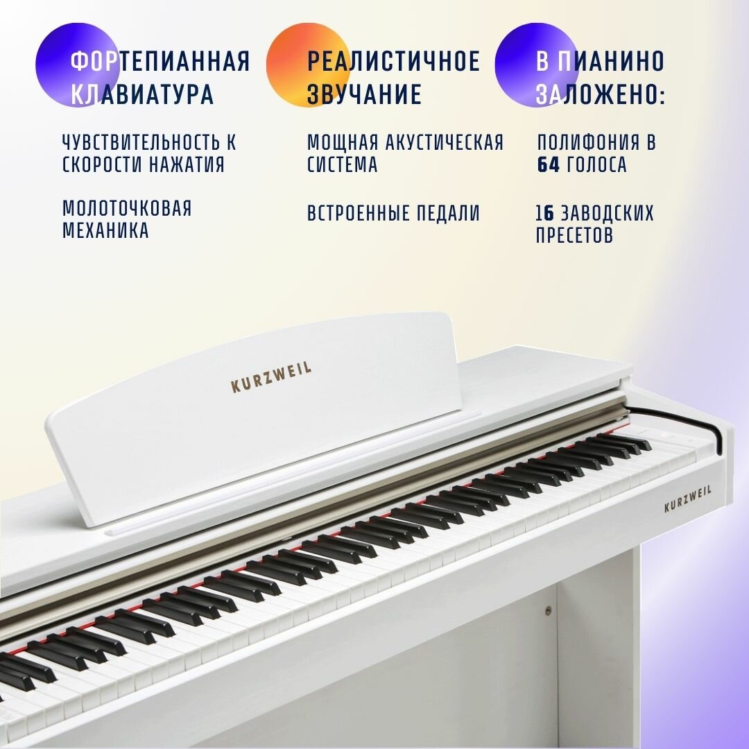 10 цен на Цифровое пианино Kurzweil M90 WH белое, с банкеткой