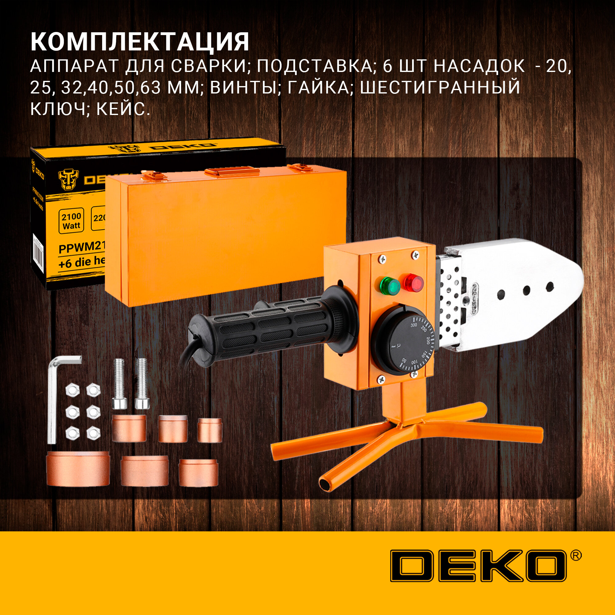 Аппарат для сварки полипропиленовых труб DEKO PPWM2100W, 6 насадок (20-63 мм)