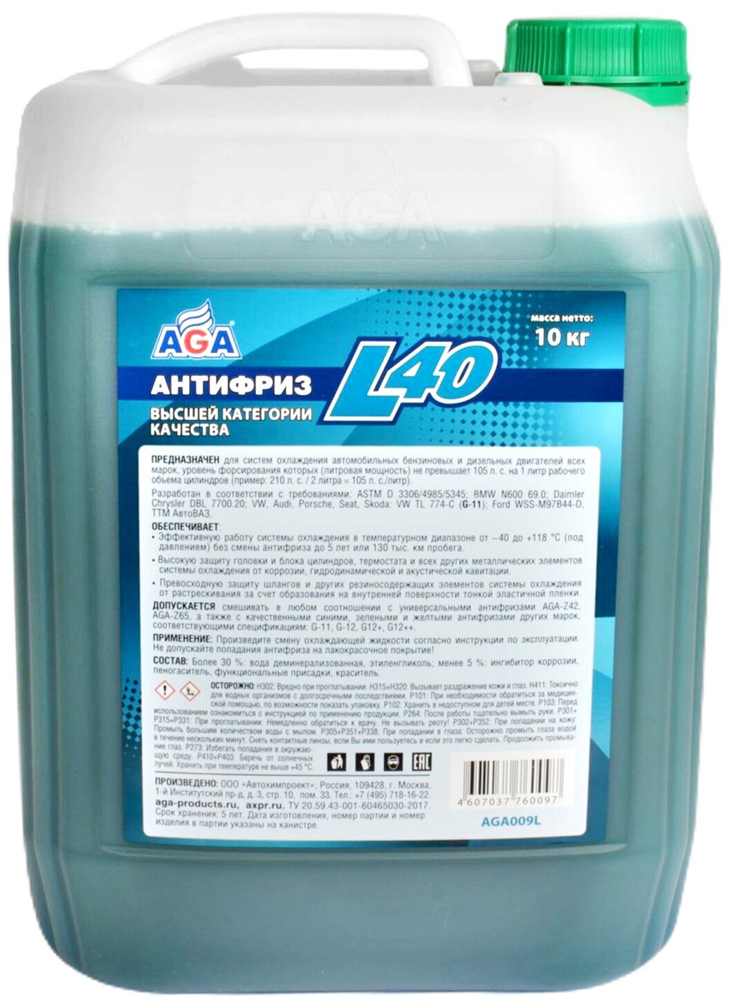 Aga009l_антифриз! Aga-L40, Готовый К Применению, Сине-Зеленый, G-11, 10кг AGA арт. AGA009L