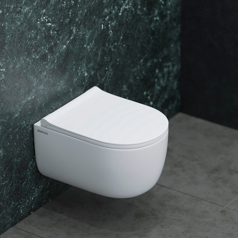 Унитаз BERGES подвесной ALBIT S Rimless 52 см, сиденье Optim SO, микролифт, быстросъем