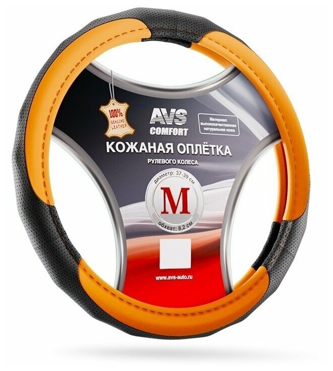 Оплетка на руль из натуральной кожи AVS GL-910M-OR (M, оранжевый) (A07521S) информация:
