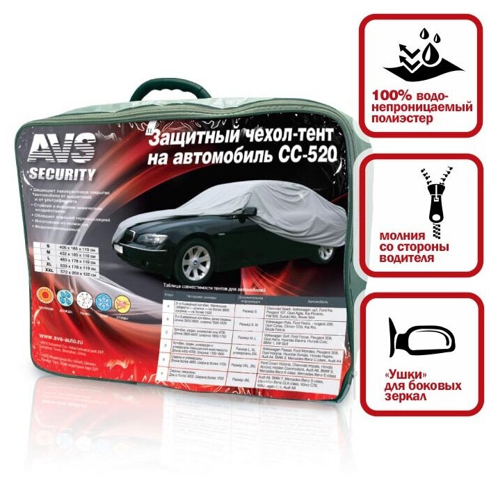 Защитный чехол-тент на автомобиль AVS СС-520 "XL" 482х178х119см (водонепроницаемый)