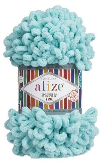 Отзывы на Пряжа плюшевая Alize Puffy Fine (Пуффи Файн) - 5 мотков 263 бирюзовый, для вязания рукми, маленькие петельки (2см), 100г 14м
