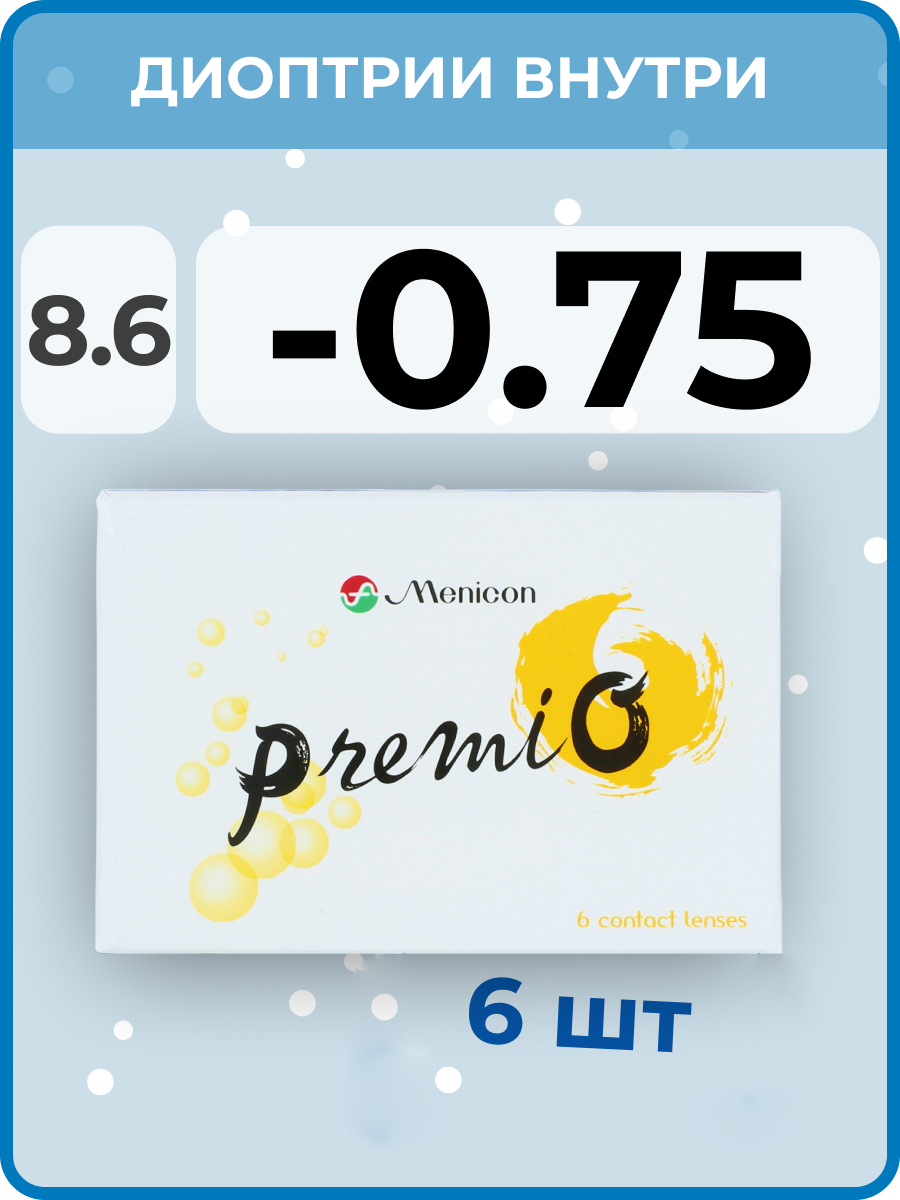 10 цен на Контактные линзы Menicon Premio 6 линз R. 8.6 SPH -0.75, 2 недели