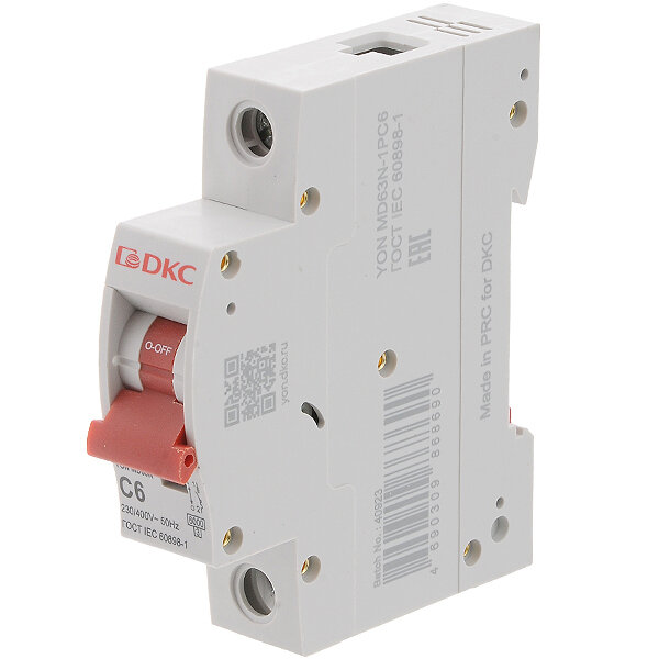 Выключатель автоматический модульный 1п C 6А 6кА MD63 YON MD63-1C6-6 информация: