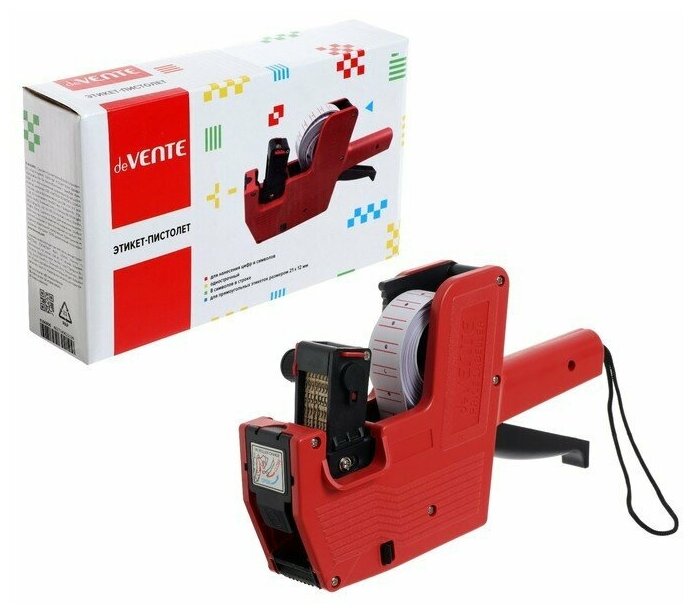 deVENTE Этикет-пистолет однострочный (цифры, знаки), 8 символов, 21 х 12 мм, для прямоугольных этикеток, deVENTE, красный