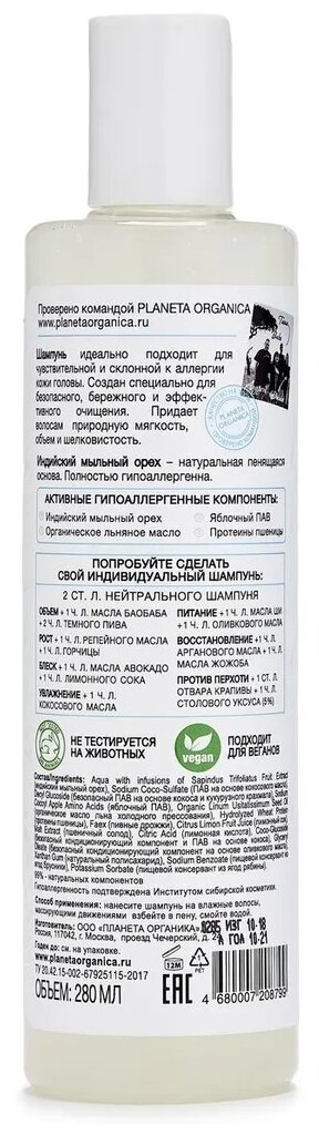 Planeta Organica Шампунь для волос, PURE, 280 мл, Planeta Organica