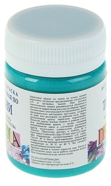 Краска по ткани, банка 50 мл, Decola, акриловая на водной основе, Pearl перламутровая Бирюзовая информация: