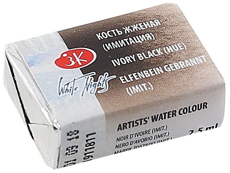 Акварель художественная «Белые ночи», 2.5 мл, кость жжёная (имитация), в кювете информация: