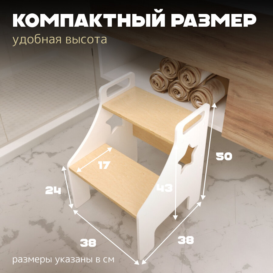 Детский стул стремянка белая, ступенька "Звездочка" PAPPADO 4 350 ₽