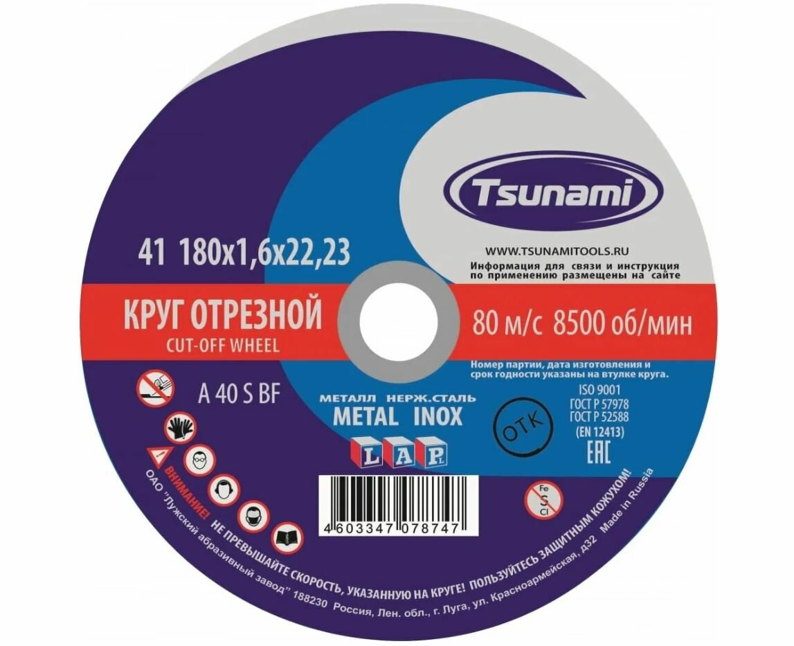 Tsunami 180х1,6х22 A 40 S BF Lкруг отрезной по металлу/нержавейке D16101801622000 360 ₽