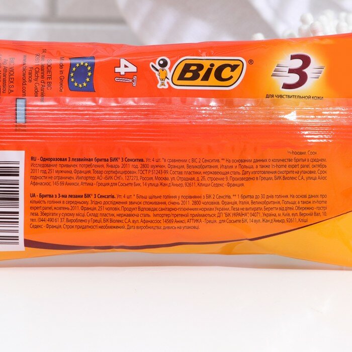 BIC Станок для бритья BIC 3 Sensetive, 4 шт информация: