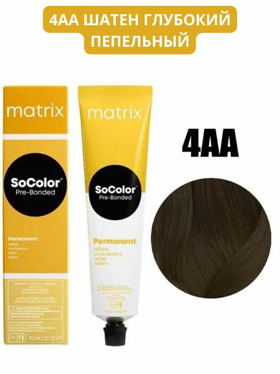 Matrix SoColor перманентная крем-краска для волос Pre-Bonded, 4AA шатен глубокий пепельный, 90 мл информация: