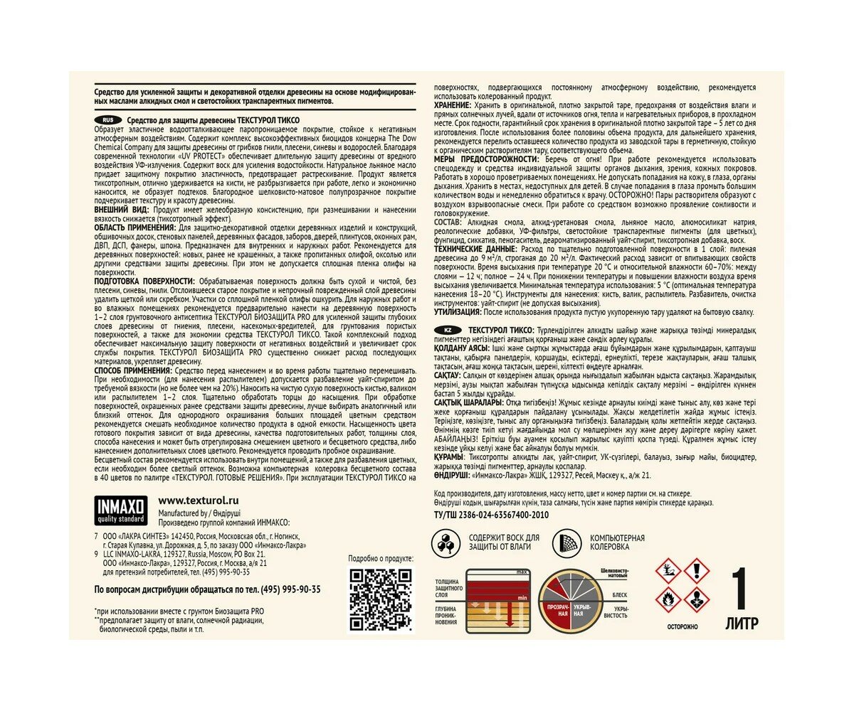 Текстурол тиксо деревозащитное средство Рябина 1л Л-С