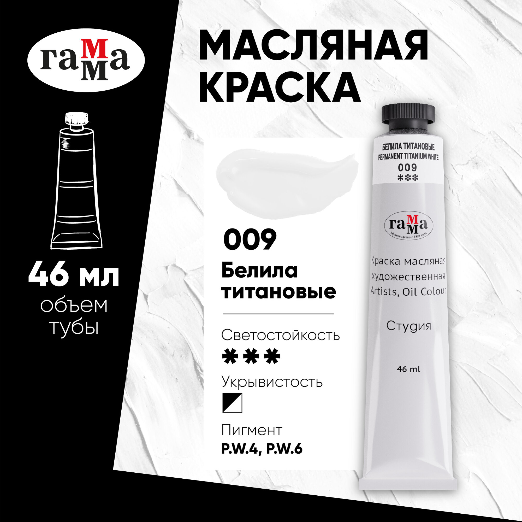 Краска масляная художественная Гамма "Студия", 46мл, туба, белила титановые информация: