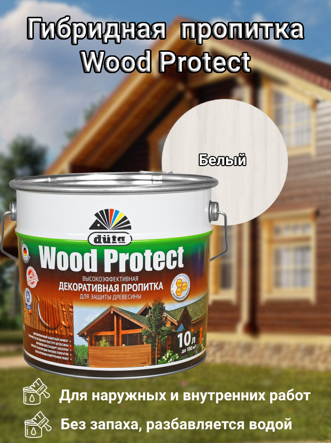 Пропитка декоративная Dufa Wood Protect для защиты древесины Белый 10 л 8 700 ₽
