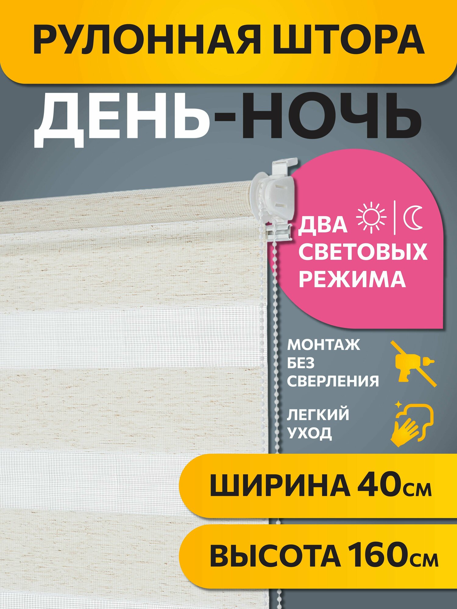 Штора рулонная день-ночь Бейс Эко-бежевый 40x160 см информация:
