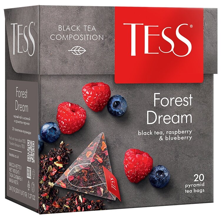 Чай Tess "Forest Dream", черный, лесные ягоды, 20 пакетиков-пирамидок по 1,8г. информация: