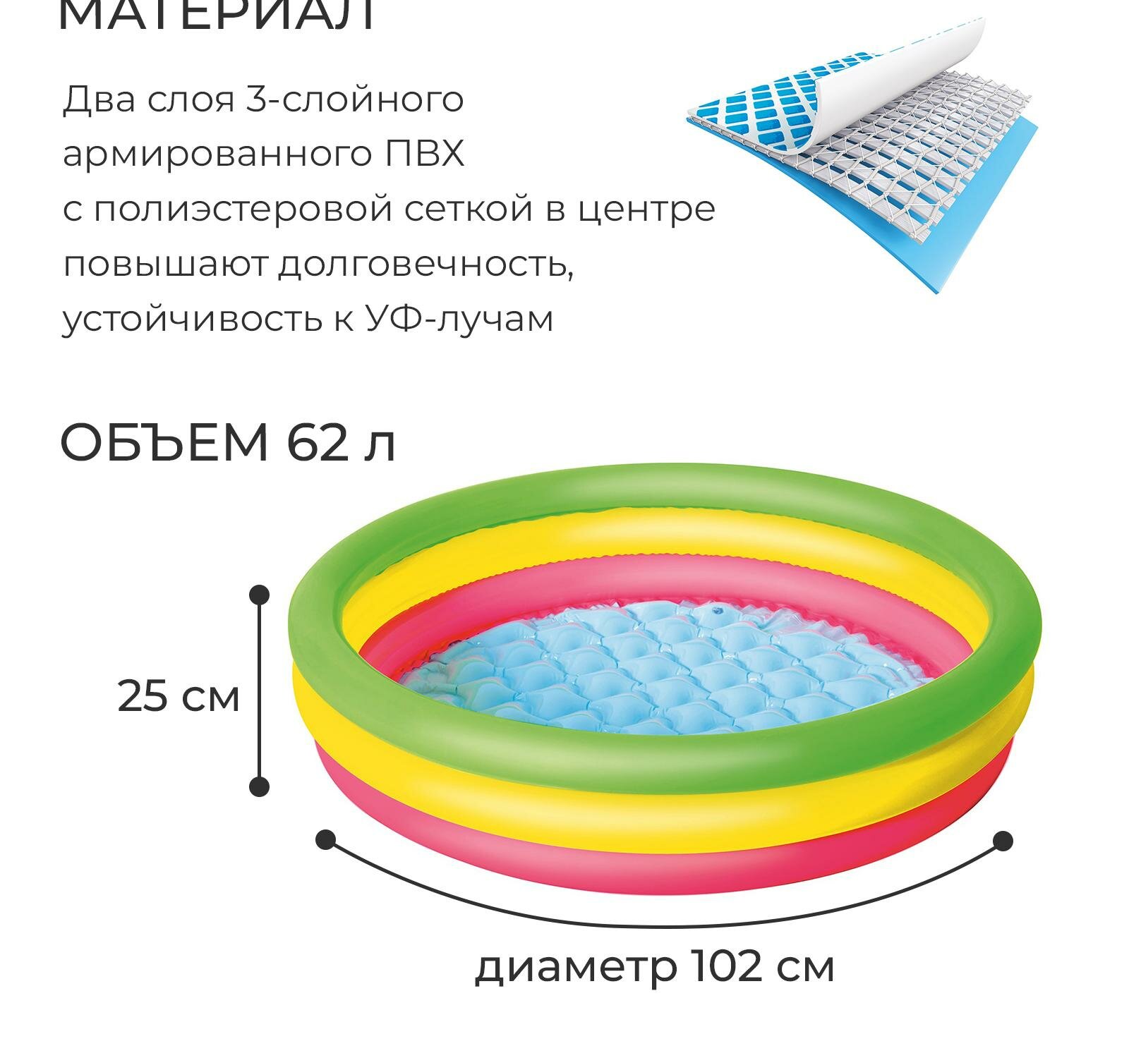 Отзывы на Бассейн надувной «Радуга», 102 х 25 см, от 2 лет, 51104 Bestway