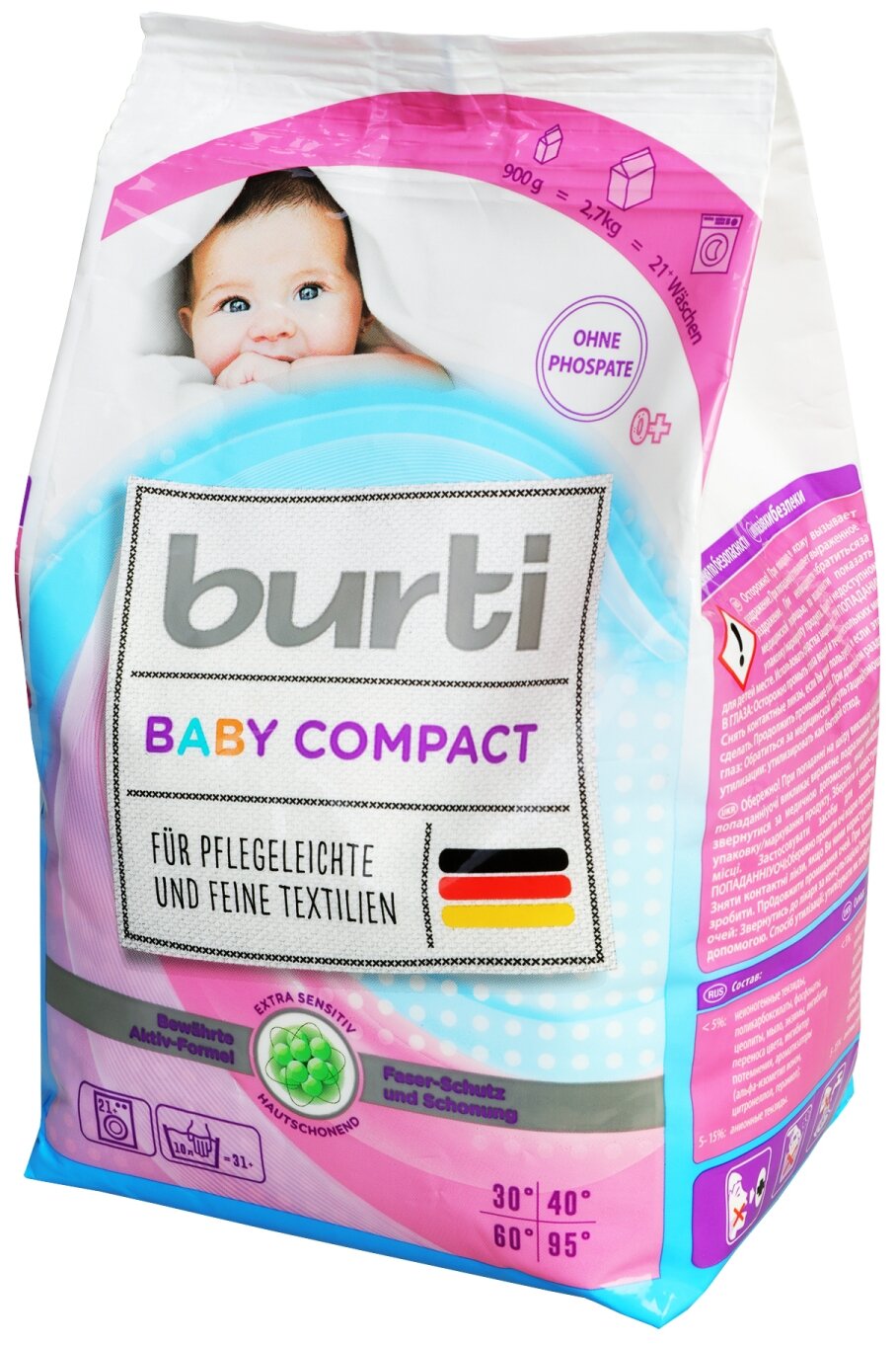 BURTI Концентрированный стиральный порошок Burti Compact Baby для детского белья 0.9кг информация: