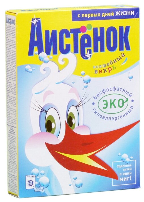 Стиральный порошок Аист Аистёнок волшебный вихрь 0.4 кг картонная пачка информация:
