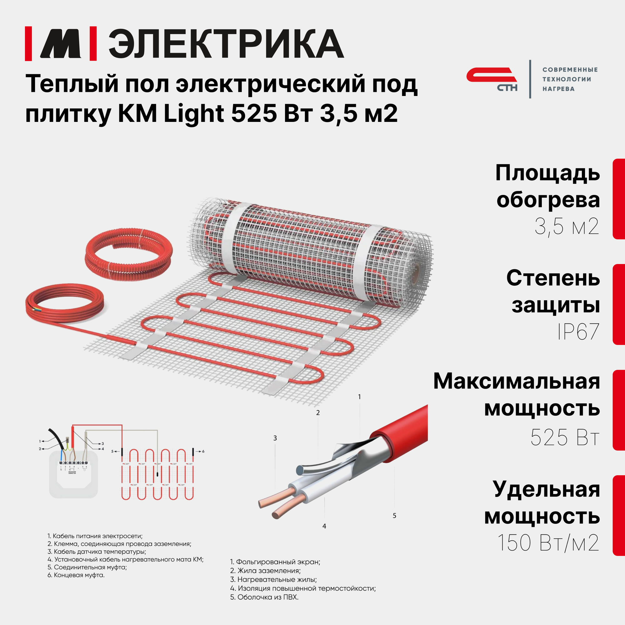 10 цен на Нагревательный мат, СТН, КМ Light - 525-3,5 150 Вт/м2, 3,5 м2, 700х50 см