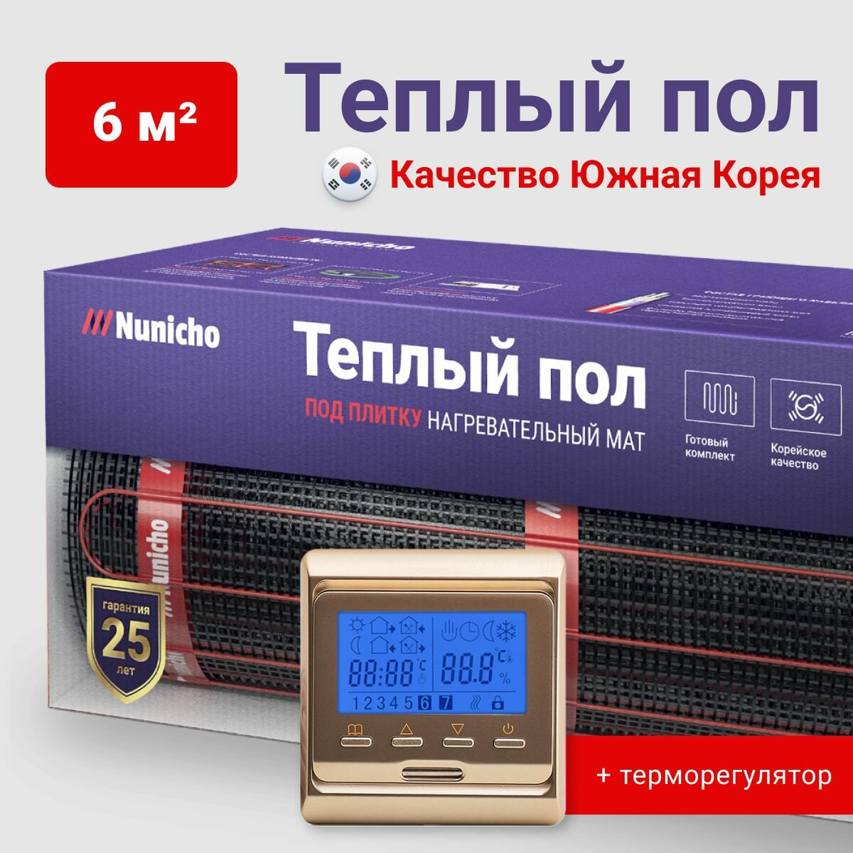 Теплый пол электрический под плитку Nunicho 6 м2 с программируемым золотистым терморегулятором в комплекте
