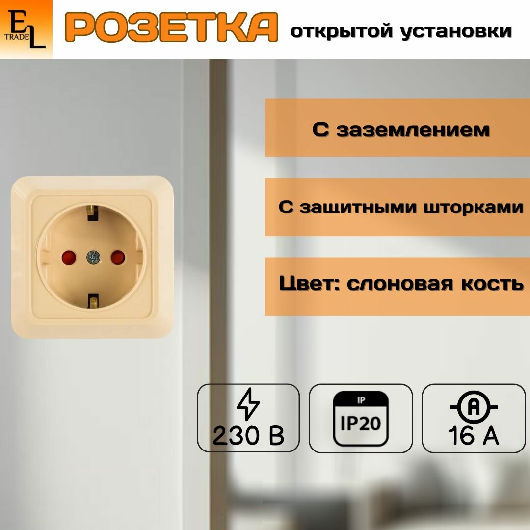 Отзывы на Розетка 2П+З открытой установки с з/ш IP20 16А, слоновая кость "Ладога" TDM {SQ1801-0064}