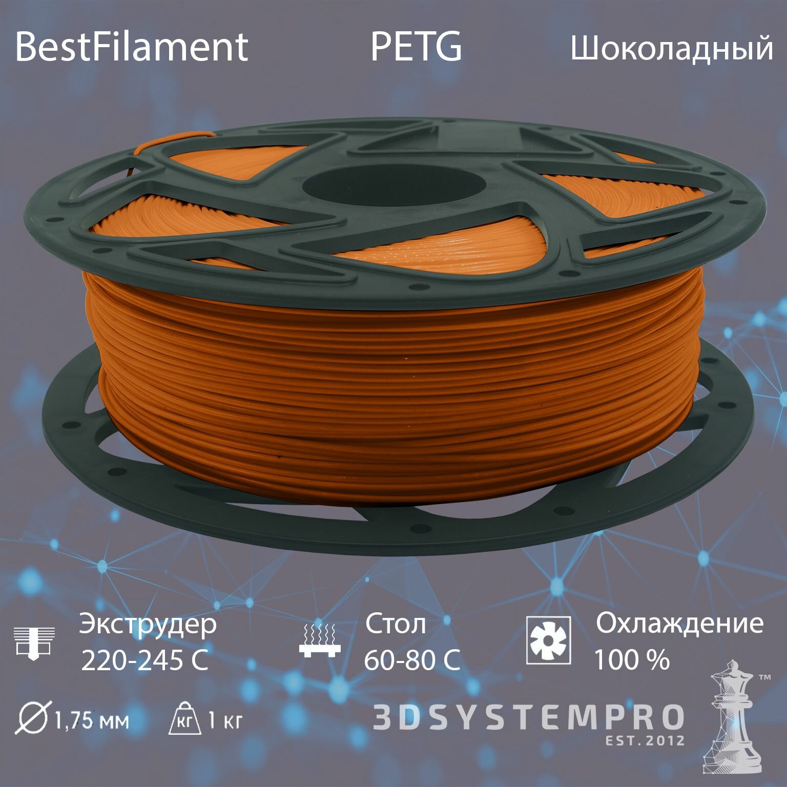 Шоколадный PETG пластик 1кг., для 3D-принтера Bestfilament 1,75 мм информация:
