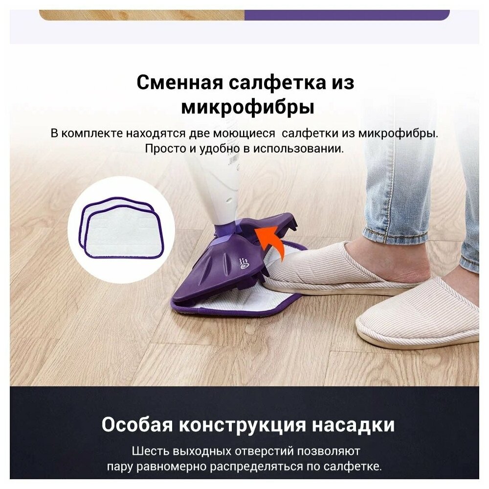 Паровая швабра Windigo WSM-01, 1300 Вт, 350 мл, время нагрева 25 сек, шнур 4 м, бело-голубой