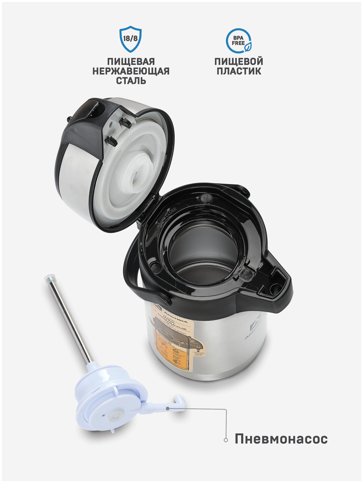 Помповый термос Арктика 501, 3.5 л, стальной