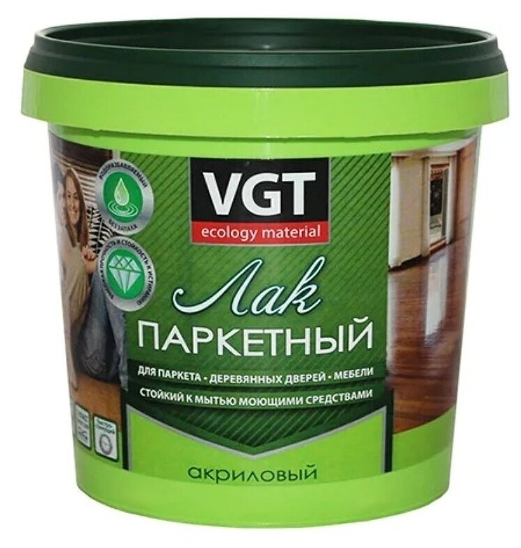 VGT Лак по дереву акриловый паркетный для пола, мебели внутри помещения, полуматовый, 0,9 кг