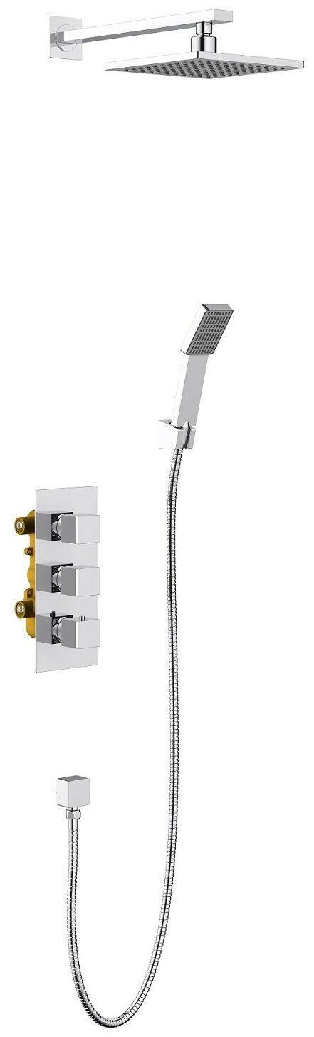 | Комплектация | держатель лейки / тропический душ / декоративная панель / Смеситель / ручная лейка / держатель ручной лейки / шланг для душа / отвод из стены / фиксирующее кольцо / ручка термостата / ручка регулирования напора / дивертор |
