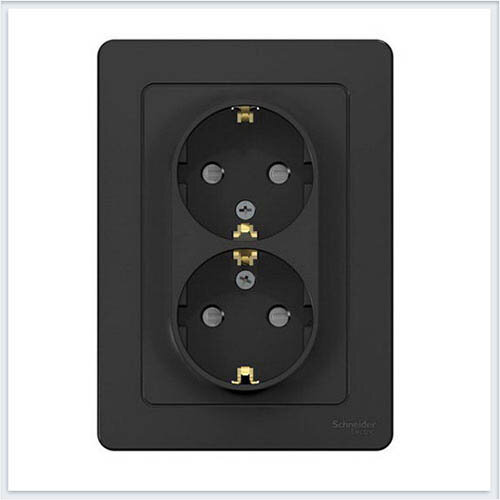 Розетка двойная 2 м с заземлением со шторками Blanca антрацит встроенный монтаж (Schneider Electric), арт. BLNRS001126 301 ₽