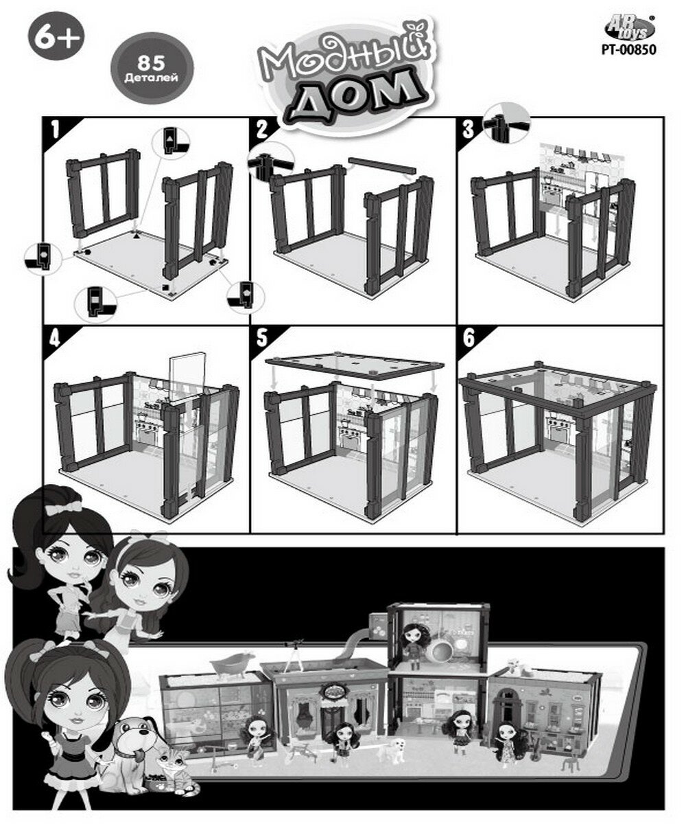 Дом для кукол Модный дом, в наборе с куклой и мебелью, 50 деталей, в коробке, 46,5x7,5x31 см - ABtoys [PT-00850] информация: