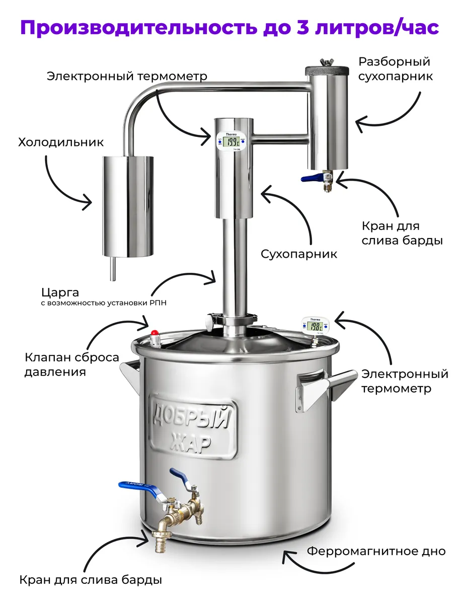 Отзывы на Самогонный аппарат Добрый Жар "Триумф" на 20 литров (нагрев на плите)